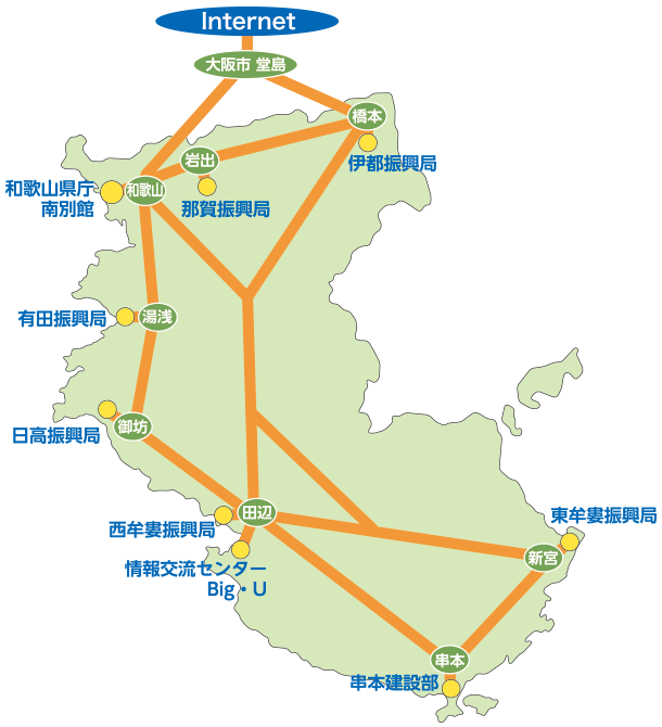 ●「きのくにe−ねっと」は、県の本庁と各振興局等を結ぶ県庁の高速通信網